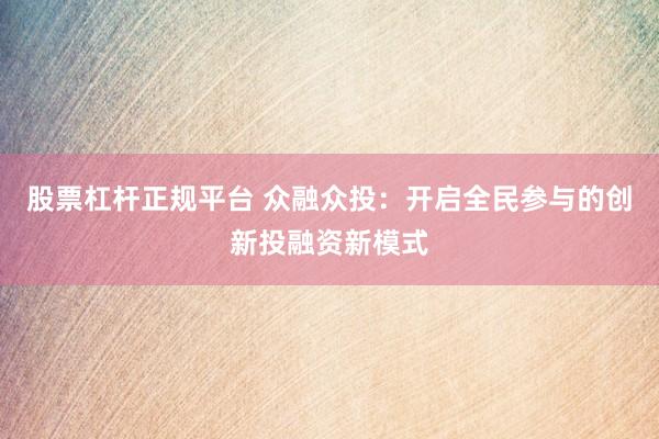 股票杠杆正规平台 众融众投:开启全民参与的创新投融资新模式